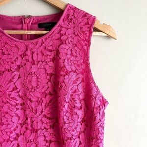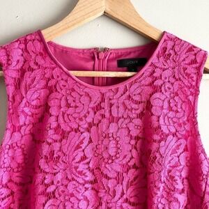 Hot Pink Lace Peplum Top by J.Crew, featuring a round neckline, flattering sleeveless peplum silhouette, zipper back closure. Fully lined.