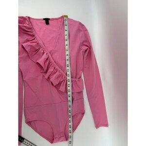 J.Crew Pink Ruffle-Front Wrap V-Neck Bodysuit XXS