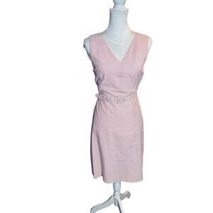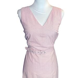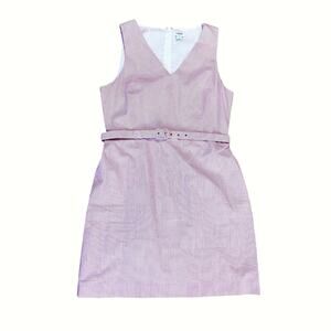 J.Crew pink and white striped seersucker dress, crafted in crisp 100% cotton and fully lined for all-day comfort. Featuring a flattering A-line silhouette, V-neckline, back zipper, and matching belted waist, this sleeveless midi dress blends classic tailoring with effortless charm. Perfect for vacations, resort wear, or weekend brunch, it embodies a polished “old money” aesthetic with subtle nautical flair. Ideal for beachy summer events, cruise nights, or preppy everyday looks.
