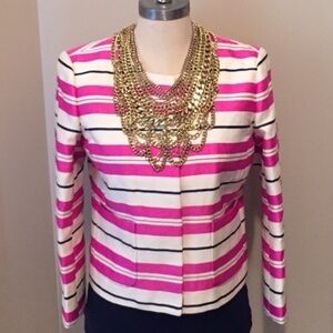 NEw without tags! J.Crew Sample Sale Pink Striped Blazer. Silk Blend. Statement necklace not included.