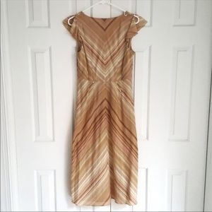 J.Crew pink & tan dress with ruffle details on the front & sleeves. Side zipper & front has a hidden tie to adjust bodice area.
