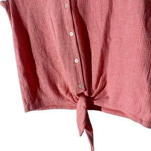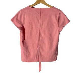 J.Crew Pink Tie-Front Crop Top| Short sleeve, v-neck, button-down closure, lightweight textured gauze-like fabric with stretch