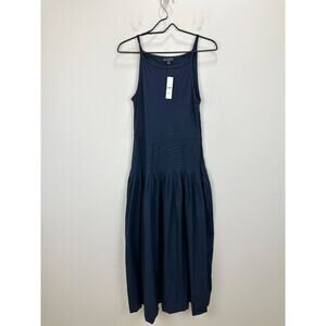 J.Crew Pintuck Mixy Dress Stretch Cotton Midi A line Minimalist Navy Small NWT.