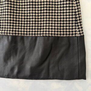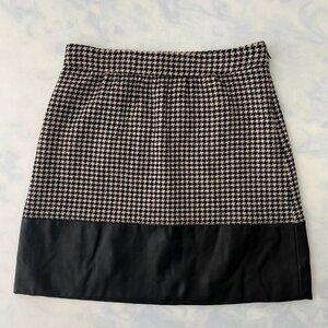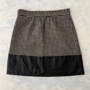 J.Crew Plaid Black & White Houndstooth Wool Faux Leather Trim Mini Skirt