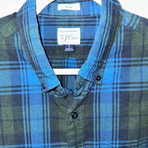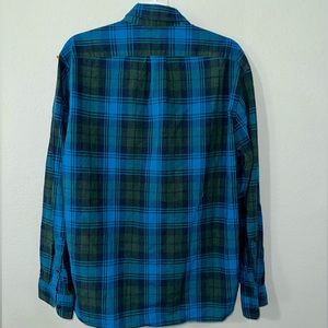 J.Crew Plaid Cotton Large Blue Green Button Up