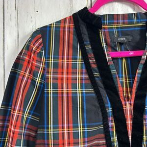 J.Crew Plaid Velvet Trim Blouse Preppy Holiday Classic Academia Chic Layering