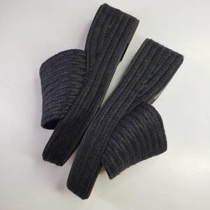 J.Crew Platform Wedge Espadrilles Wedge Slide Sandals 10 Black Jute