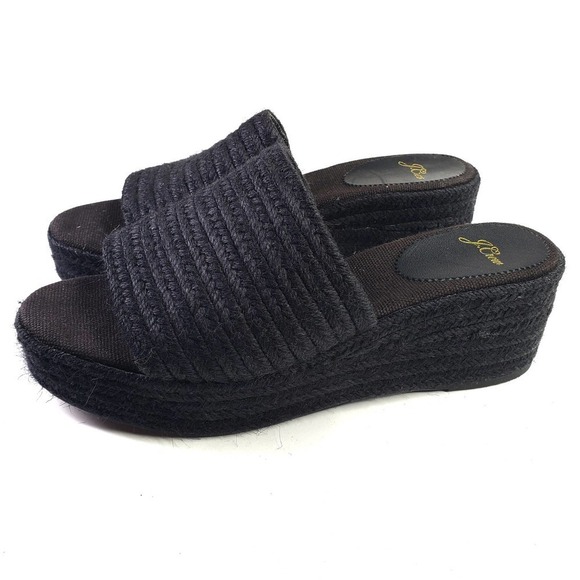 J.Crew Platform Wedge Espadrilles Wedge Slide Sandals 10 Black Jute