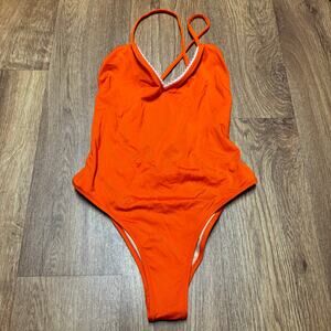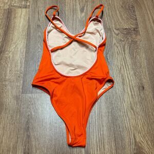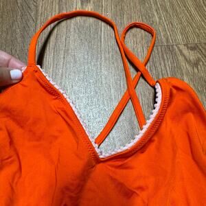 J.Crew Playa Womens X Open Back Orange Pink Pom One Piece Swim Suit Size XXS