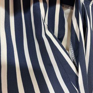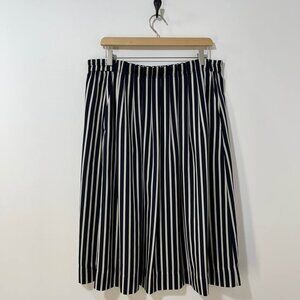 J.Crew Pleated Striped Navy Midi Skirt, Elastic Waistband, Pockets [size 6]