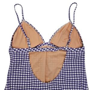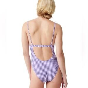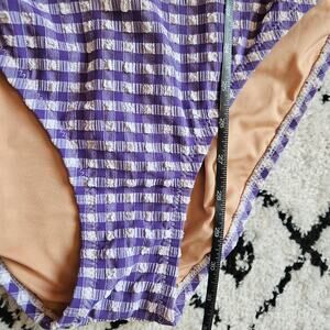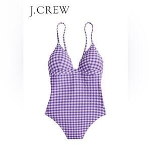 J.Crew Plunge One Piece Gingham Swimsuit Size 18 Purple & White Seersucker