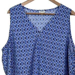J.Crew Plus Size 2X Blue Print Sleeveless V-Neck Blouse