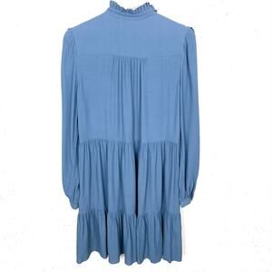 J.Crew Point Sur Hadid Shirt Dress Ruffle Sleeve EcoVero Viscous Blend Blue 6