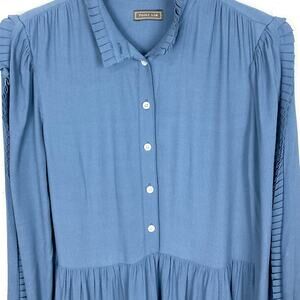 J.Crew Point Sur Hadid Shirt Dress Ruffle Sleeve EcoVero Viscous Blend Blue
