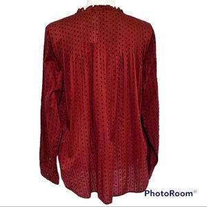 J.Crew Point Sur ruffle clip dot top deep redwood
