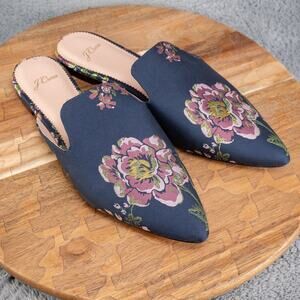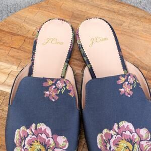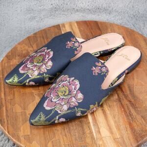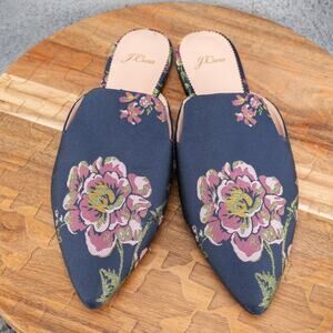J.Crew Pointed-Toe Mule Slides Floral Navy Blue Brocade Women's Size 10