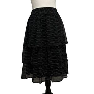 J.Crew Polka Dot Black & White Tiered MIDI Skirt Elastic Waist Size PS