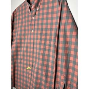 J.Crew Polo Button up Slim Plaid Long Sleeve Red Grey Casual Preppy Mens Medium