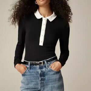 J.Crew Polo Shirt refined rib long sleeve womens Black (medium) rugby preppy