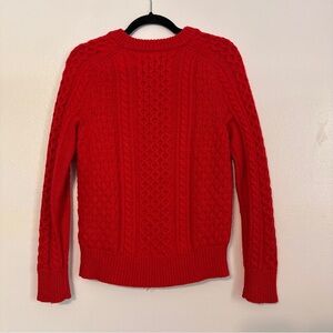 J.Crew Popcorn Cable Knit Fisherman Sweater Red Lambs Wool Size XS