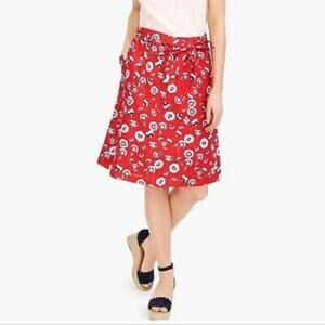 J.Crew Poppy Print Red Linen Skirt Size XS