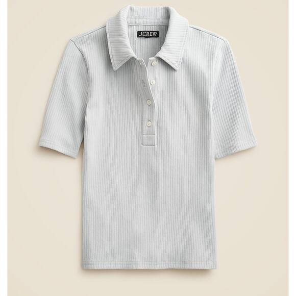 J.Crew Premium Rib Short Sleeve Polo Shirt Women’s Size Medium – CI046, Soft Light Blue Colorway, Stretchy Premium Ribbed Knit Fabric, Classic Polo Collar with Open Placket, Short Sleeves, Slim Yet Comfortable Fit, Polished and Casual All in One, Ideal for Elevated Everyday Looks, Smart Casual Outfits, or Modern Minimalist Styling.