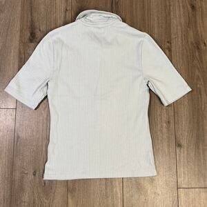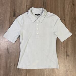 J.Crew Premium Rib Short Sleeve Polo Shirt Womens M Light Blue Collared Stretch
