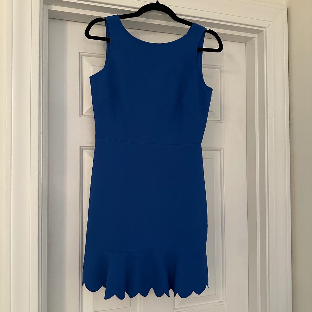Cute J.Crew dress, perfect for a spring or summer wedding or day at the track. Low back. Scalloped hem. Good for petites.