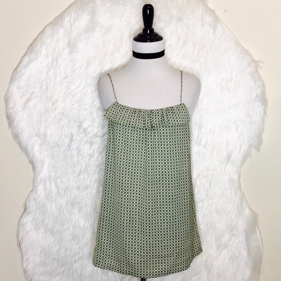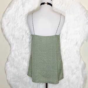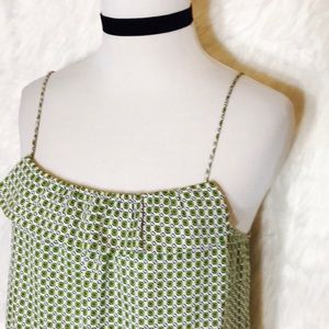 Ivory Print Spaghetti Strap Cami Top, Green Geometric Print Straight, Ruffled Top and Smooth. Pit to pit: 16", pit to hem: 17". NWOT