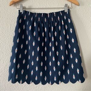 J.Crew Printed Scalloped Sidewalk Skirt Women’s 00 Blue Linen Cotton Elastic