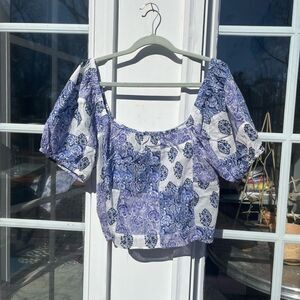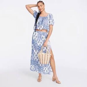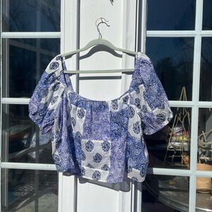Adorable j crew Puff-sleeve cropped top in patchwork print. Never been worn, with tags attached. Organic cotton. Machine washable. Length 20”. Matching skirt sold separately.