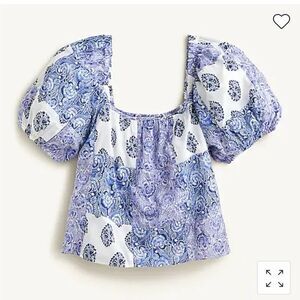 J Crew Puff Sleeve Cropped Top in Patchwork Print