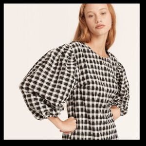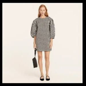 Gorgeous j crew puff sleeve mini dress in textured plaid. Never been worn, with tags and in packaging. Pullover styling. Runs slightly large.