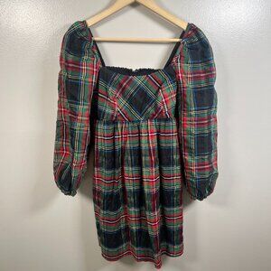 J.Crew Puff-sleeve Mini Dress Size 00 Stewart Tartan Plaid Holiday Christmas