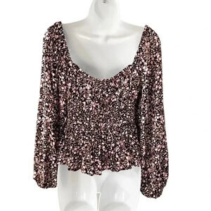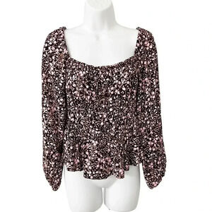 J.Crew Puff-sleeve drapey crepe top in fall garden floral size Small