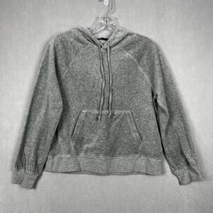 J.Crew Womens Pullover Hoodie XS Gray Velvet Long Sleeve Pockets Relaxed Velour.