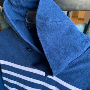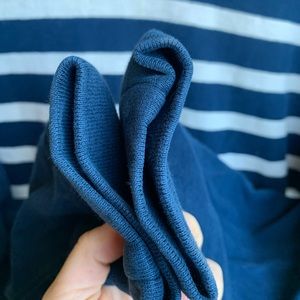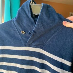 Used pullover striped sweater from J.crew. Features a slight night neck which can be folded over or worn up. Has a kangaroo pouch in front. Shows normal signs of wear. Only major flaw is two stains on the front pocket. I have only washed with normal detergent and have not made an effort to remove stains, I bet they could come out! Very comfortable and cute. This is a mens size small, fits like a women’s medium. Please ask me any questions or make an offer! Comes with one small free gift!