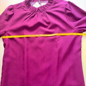 This elegant purple dress from J.Crew features a gathered neckline and long sleeves with ruffled cuffs. It’s perfect for both professional settings and evening outings.