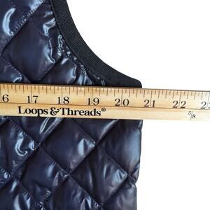 J.Crew navy blue quilted down vest in size Medium. This sleek and versatile layering piece features a diamond quilted exterior with light shine, oversized front patch pockets, and full front zip closure.