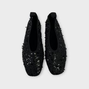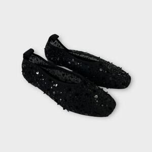 J.Crew Quinn Sequin Embellished Mesh Ballet Flats Black Size 7.5