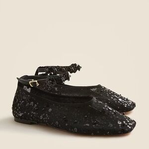 J.Crew Quinn embellished removable ankle-strap ballet flats sequin & mesh sz 9.5