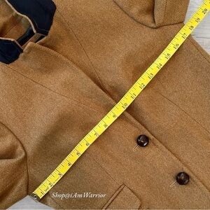 Functional leather buttons at cuffs. Lined. Navy undercollar. EUC. Size 6, see photos for measurements.