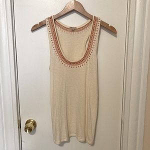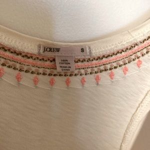 J.Crew cream colored racerback tanktop with coral pink and black embroidery on full neckline. 100% Cotton. Size small. Worn once.