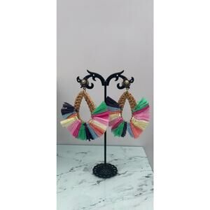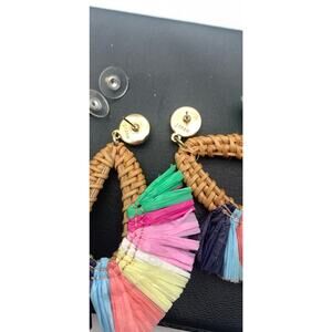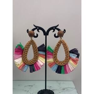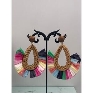 J.Crew Raffia Fan Statement Earrings Multi-color beachy Summer Boho Signed