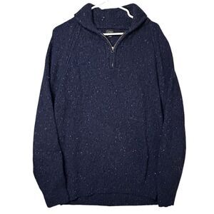 J. Crew Ragg Sweater Mens Sz L Blue 1/4 Zip Pullover Wool Blend Confetti Knit
