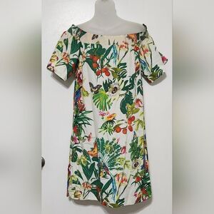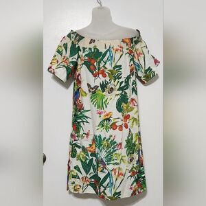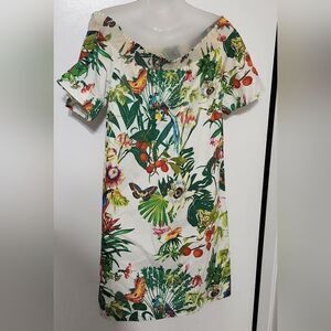 J.Crew Ratti Into the Wild Jungle Dress Womens Off Shoulder Toucan Size 0.