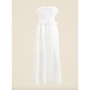 J.Crew Ravenna Dress Ramie Ruffle Lightweight Smocked Midi White XS NWT