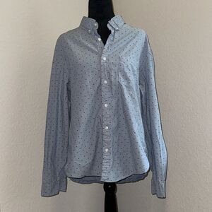J.Crew Re-Imagined Shirt Men's Large Blue Heart Print Cotton Casual Button-Down