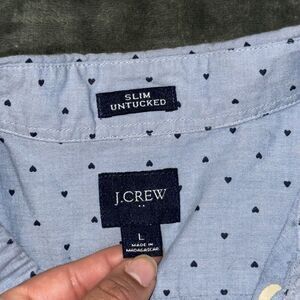 J.Crew Re-Imagined Shirt Men's Large Blue Heart Print Cotton Casual Button-Down.