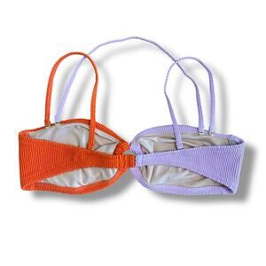 J.Crew Re-Imagined Smocked Bikini Set Lilac Orange Bandeau Top L Bottom M